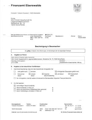 Download Download-Bereich Hier finden Sie einige Dokumente zum Download §7 Freistellungsbescheinigung zum Steuerabzug Handelsregisterauszug Unbedenklichkeitsbescheinigung Auskunft aus dem Gewerbezentralregister Präqualifikation $6 VOB/A PQ VOB Gruppenunfallversicherung – Allianz IHK Mitgliedsbestätigung Unbedenklichkeit BG Bau Unbedenklichkeitsbescheinigung – ERGO Unbedenklichkeitsbescheinigung – IKK Unbedenklichkeitsbescheinigung – KKH Unbedenklichkeitsbescheinigung – TK Unbedenklichkeitsbescheinigung – DAK Unbedenklichkeitsbescheinigung – AOK Plus Unbedenklichkeitsbescheinigung – AOK Unbedenklichkeitsbescheinigung – BARMER GEK